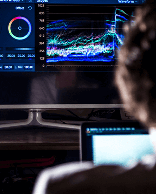 Mettiamo a tua disposizione tre sale di post produzione con oltre 60 iMac, oltre control Panel BlackMagic, tavolette grafiche Wacon, attrezzatura fotografica e, ovviamente, tutti i software più importanti a tua disposizione.